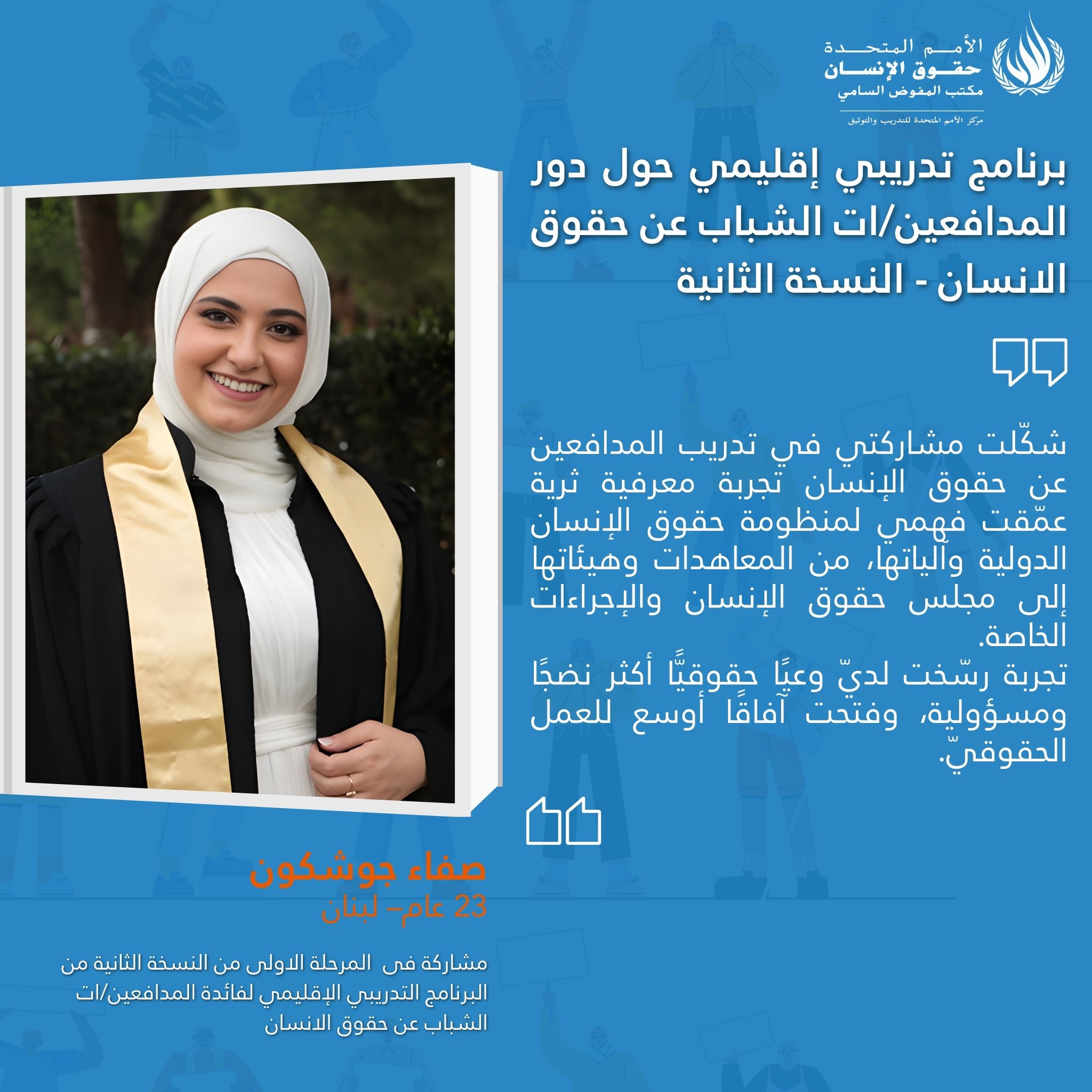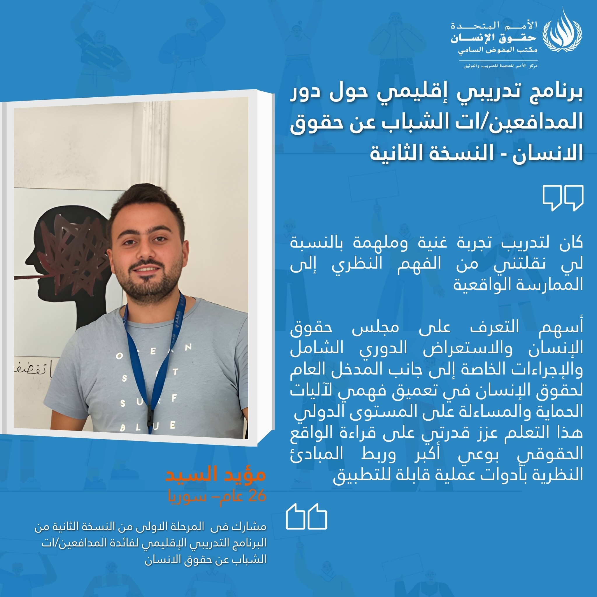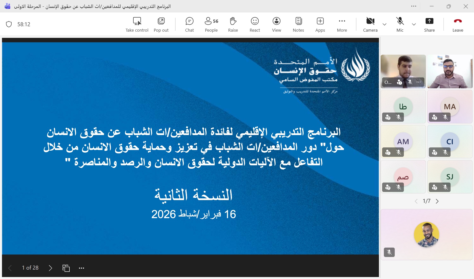 On 16 February 2026 the UN Human Rights Training and Documentation Centre for South-West Asia and the Arab Region launched the second edition of regional online training programme on “The Role of Young Human Rights Defenders in the Promotion and Protection of Human Rights.” The programme consists of three training phases that will be held online between February and March 2026. The aim of this training series is to strengthen the capacities of young human rights defenders to engage with international human rights mechanisms, monitoring, reporting and advocacy.