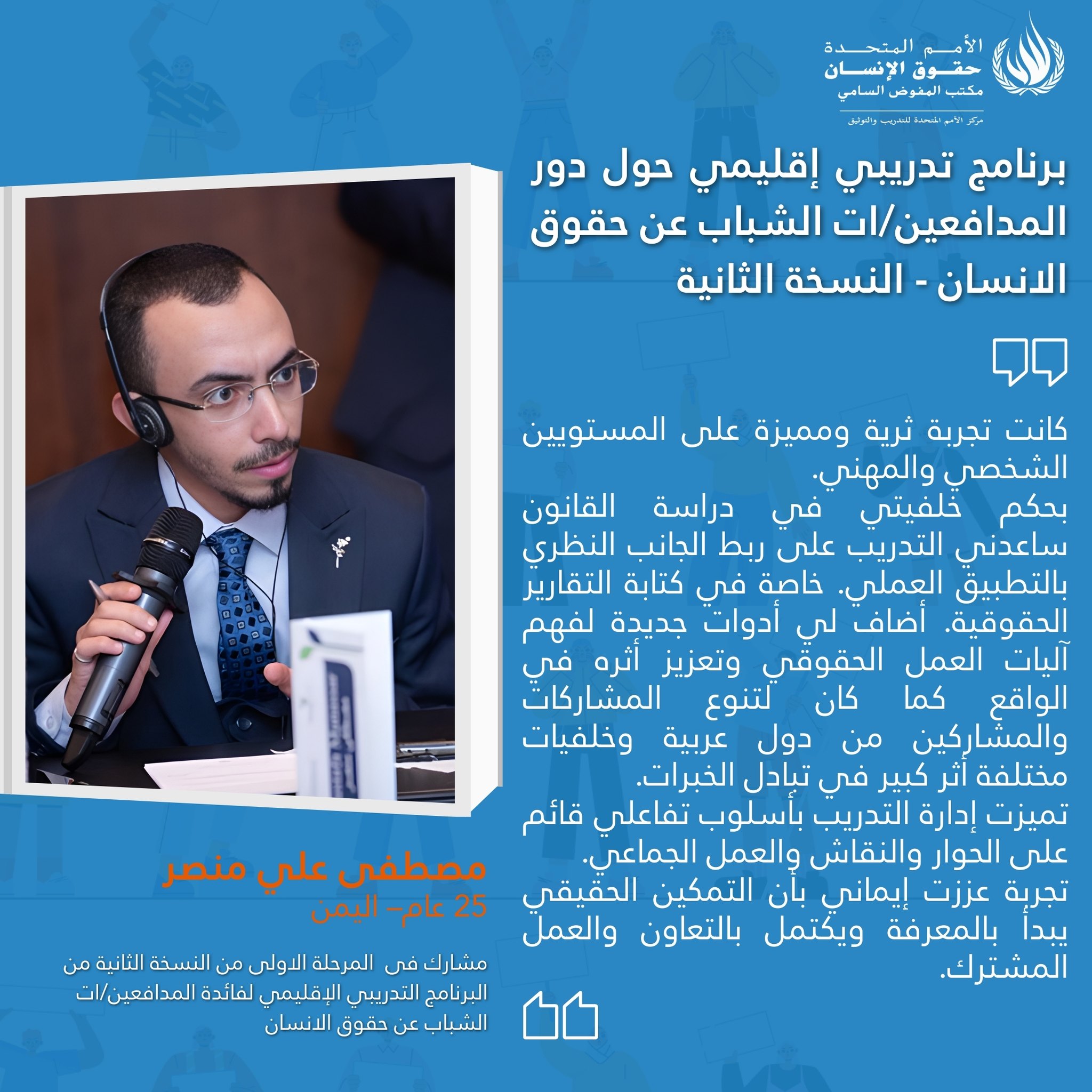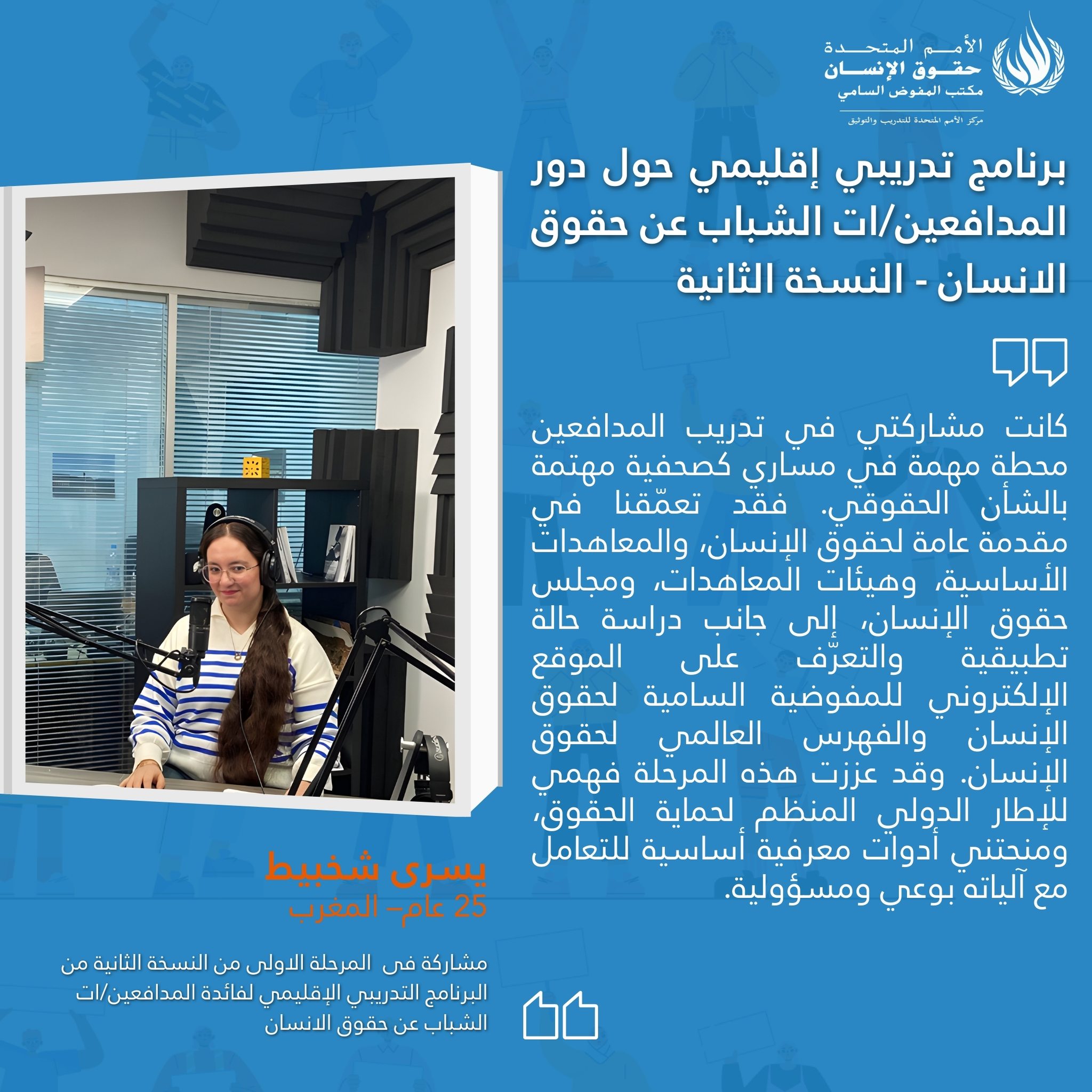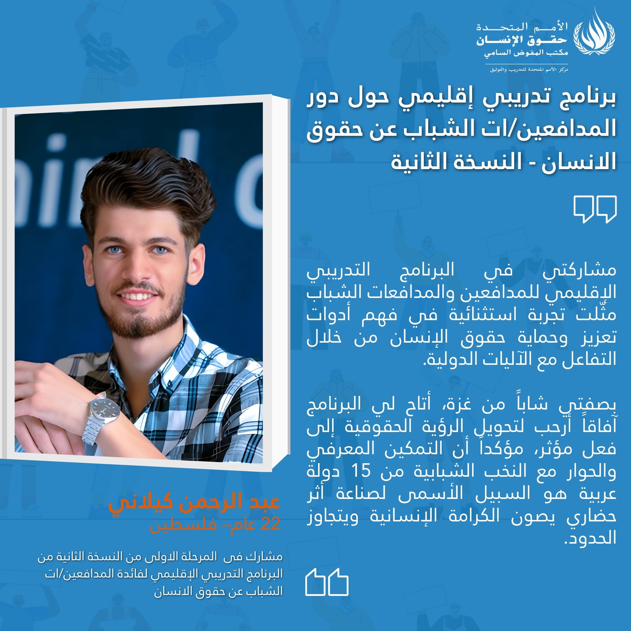 On 16 February 2026 the UN Human Rights Training and Documentation Centre for South-West Asia and the Arab Region launched the second edition of regional online training programme on “The Role of Young Human Rights Defenders in the Promotion and Protection of Human Rights.” The programme consists of three training phases that will be held online between February and March 2026. The aim of this training series is to strengthen the capacities of young human rights defenders to engage with international human rights mechanisms, monitoring, reporting and advocacy.