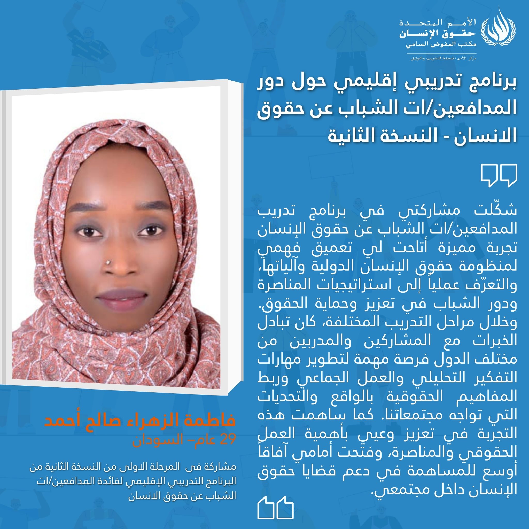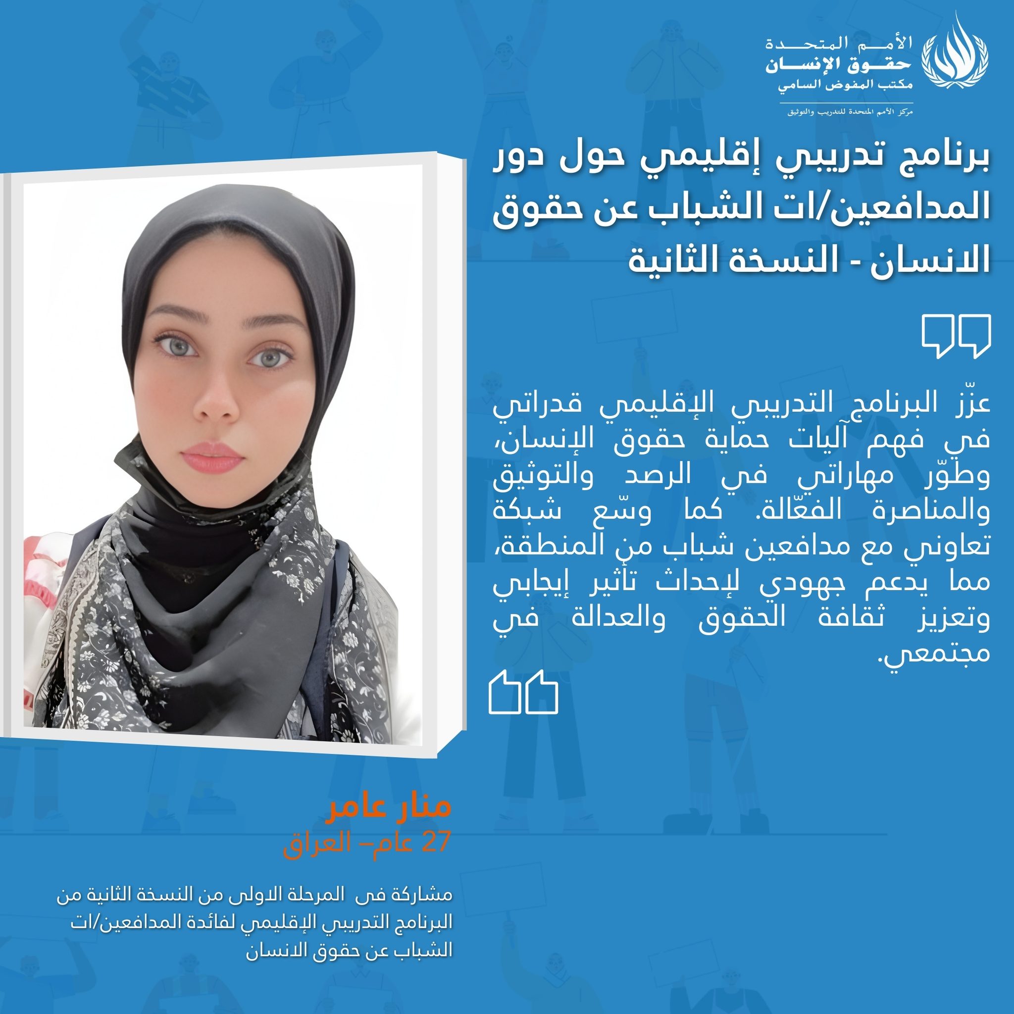 On 10 March 2026, the UN Human Rights Training and Documentation Centre for South-West Asia and the Arab Region concluded the second edition of a regional training programme on “The Role of Young Human Rights Defenders in the Promotion and Protection of Human Rights.”