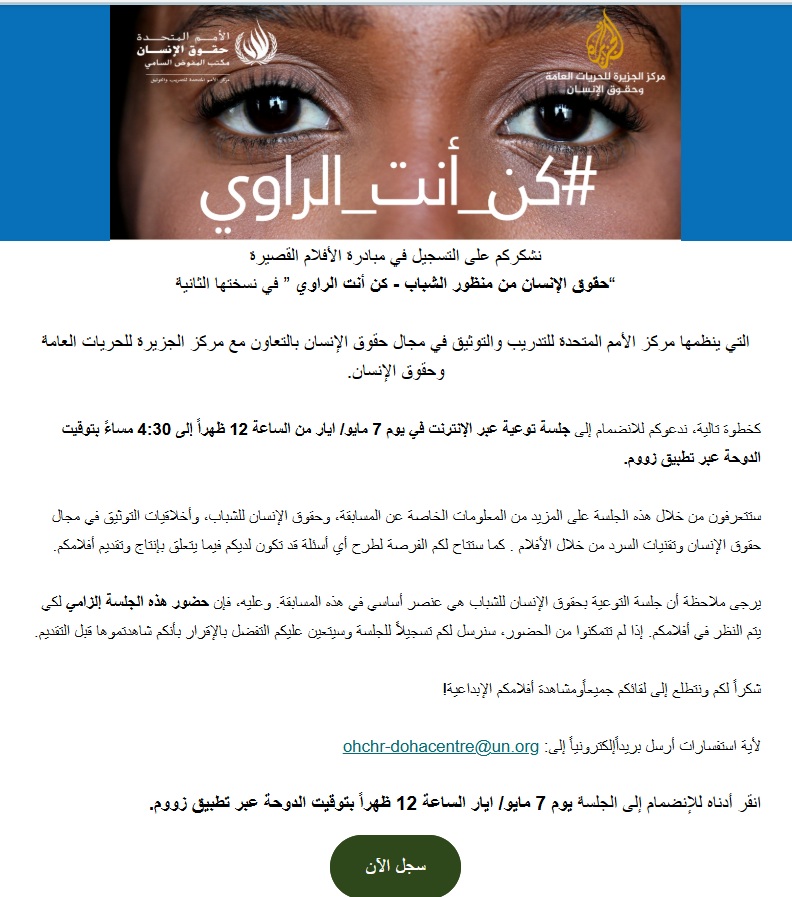 إطلاق النسخة الثانية من مبادرة أفلام الشباب في فعالية أفلام حقوق الإنسان وصناعة التغيير 15 مايو، قطر