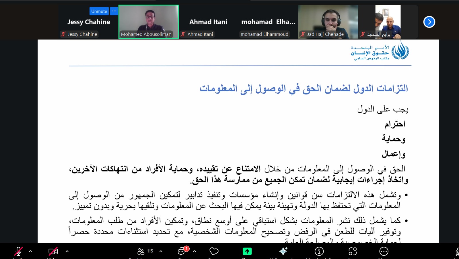 نظم المركز بالتعاون مع مفوضية الأمم المتحدة السامية لحقوق الإنسان لمنطقة الشرق الأوسط وشمال أفريقيا، ندوة إقليمية عبر الإنترنت حول الحق في الوصول إلى المعلومات ودور الشباب في النهوض بأهداف التنمية المستدامة (SDGs) في العصر الرقمي. وجمع الحدث أكثر من 130 مشاركا من 22 دولة عربية عكست رؤاهم القيمة تطلعاتهم في أن يصبحوا شركاء حقيقيين في تشكيل السياسات والاستفادة من الحق في الوصول إلى المعلومات كأداة استراتيجية للعدالة والمساءلة والتنمية المستدامة في المنطقة.