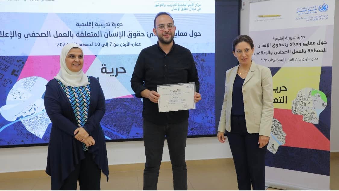 نظم مركز الأمم المتحدة للتدريب والتوثيق في مجال حقوق الإنسان لجنوب غرب آسيا والمنطقة العربية بالتعاون مع معهد الاعلام الأردني دورة تدريبية إقليمية حول -معايير ومبادئ حقوق الإنسان المتعلقة بالعمل الصحفي والإعلامي-في الفترة من 7 إلى 10 أغسطس/أب 2023 في عمان