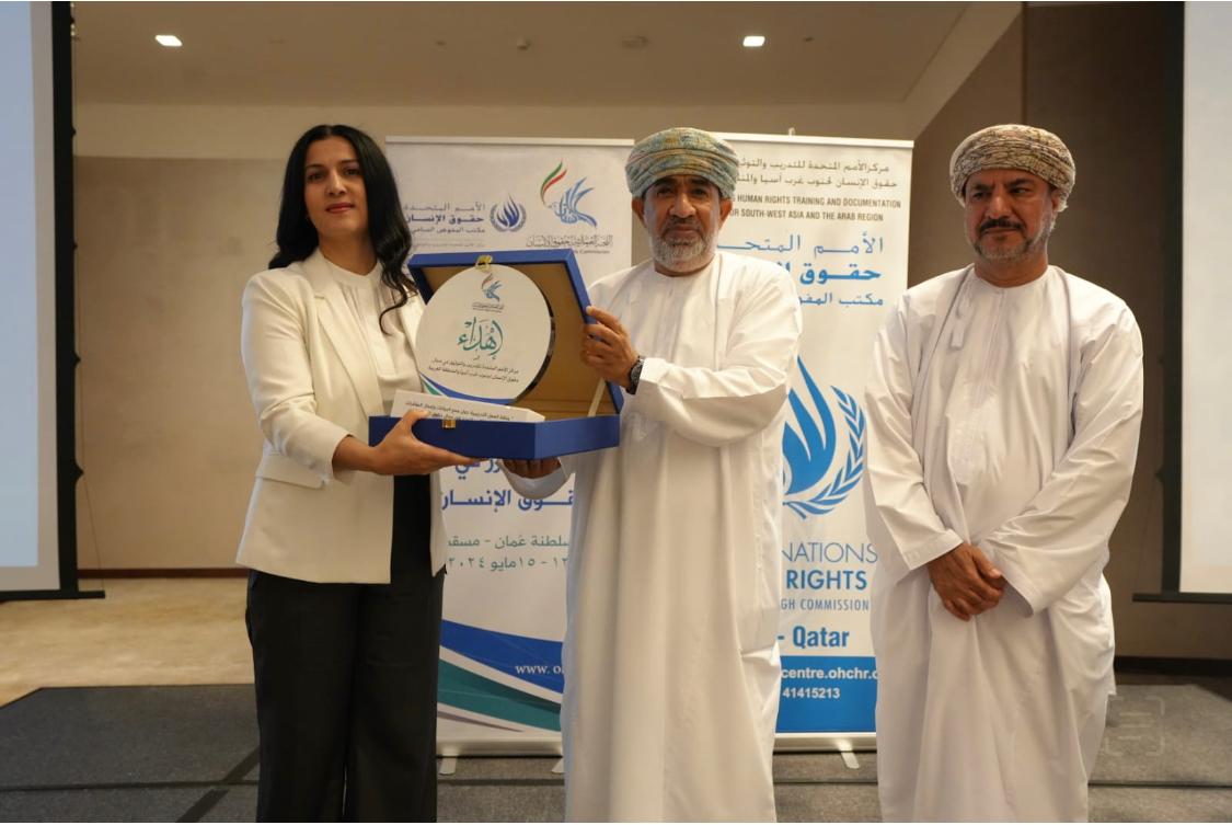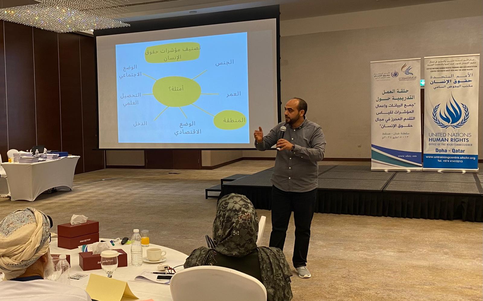 قدّم المركز بالشراكة مع اللجنة العمانية لحقوق الإنسان ورشة عمل لتعزيز قدرات المشاركين/ات في وضع مؤشرات كمية ونوعية لقياس التقدم المحرز في تنفيذ المعايير والمبادئ الدولية لحقوق الإنسان. حضر الورشة ممثلون/ات عن اللجنة العمانية لحقوق الإنسان والمؤسسات الحكومية الوطنية بما في ذلك وزارتي الخارجية والتنمية الاجتماعية ومجلس الشورى وشرطة عمان السلطانية والمركز الوطني للإحصاء والمعلومات وممثلون/ات عن منظمات المجتمع المدني. حضر الورشة 40 مشاركًا/ة (53٪ إناث) من سلطنة عمان.